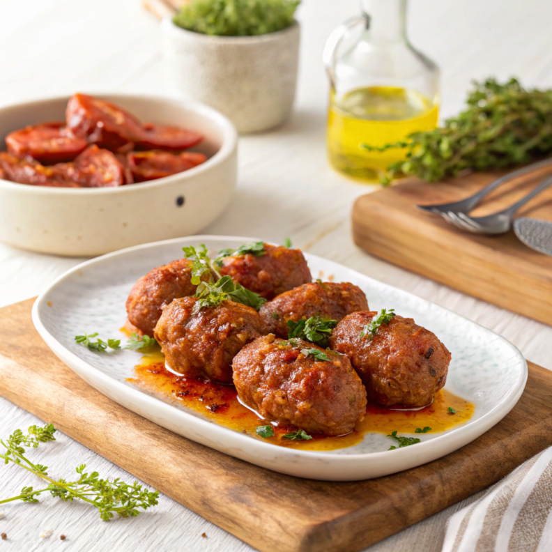 Serve the soutzoukakia hot, either on their own or with a side of rice or crusty bread.