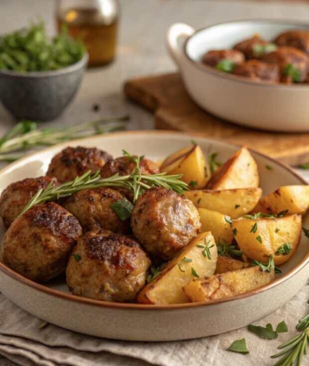 Greek Meatballs with potatoes A quick and easy recipe for traditional and fluffy meatballs with oven roasted potatoes. These traditional greek meatballs with oven-roasted potatoes are packed with the flavors of the Mediterranean. Crockery & ingredients love using—find them all here:My Mediterranean Greek Pantry 2 pounds lean ground beef2 small onions, finely chopped2 garlic cloves, minced ...