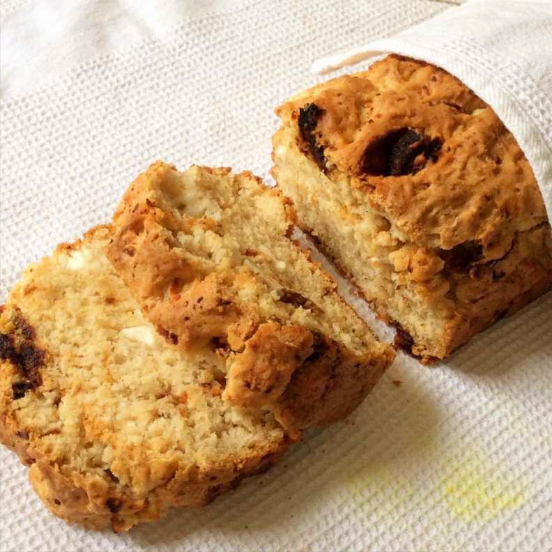 Preheat oven to 170 C, and line a 25~12 cm loaf tin with baking paper.