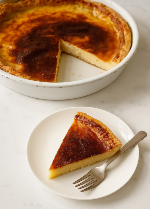 The secret is to get that golden, slightly burnt top without overbaking the inside. I place the pie on the higher rack just for the last few minutes, so the surface caramelizes but the filling stays creamy. You have to watch it closely — one extra minute can make the difference.