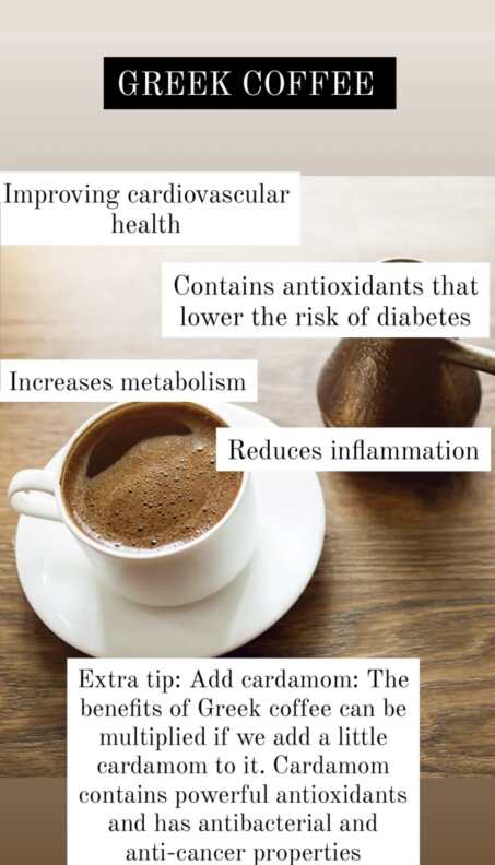 Greek coffee, also known as “Ellinikos Kafes”, is a robust and flavorful coffee served with foam on top (kaimaki) and the grounds remaining at the bottom. This style of coffee is made using finely ground coffee beans, without any filtering.