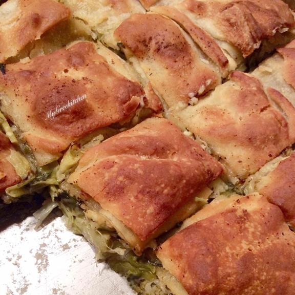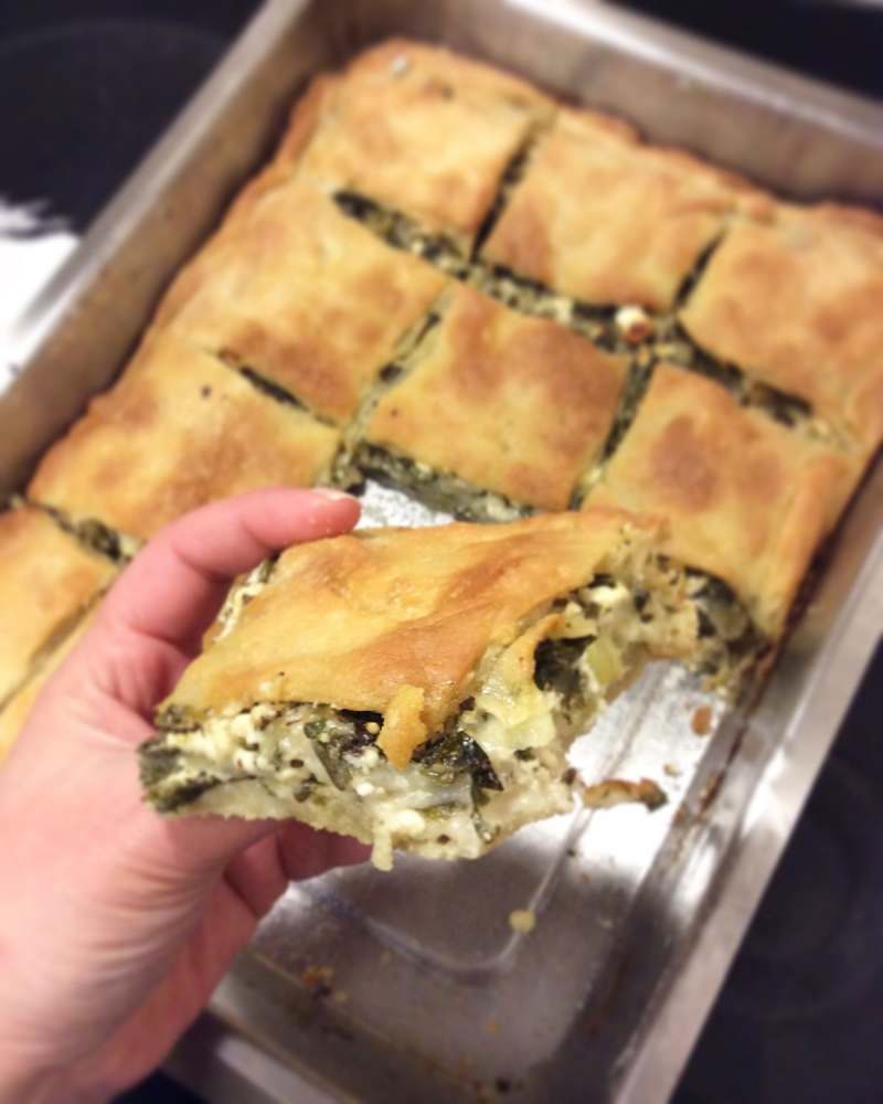 Although spanakopita and tiropita are the most common, prasopita is also comparably popular. The sweetness of the leek along with the feta is a perfect combination and a nice break from the typical.
