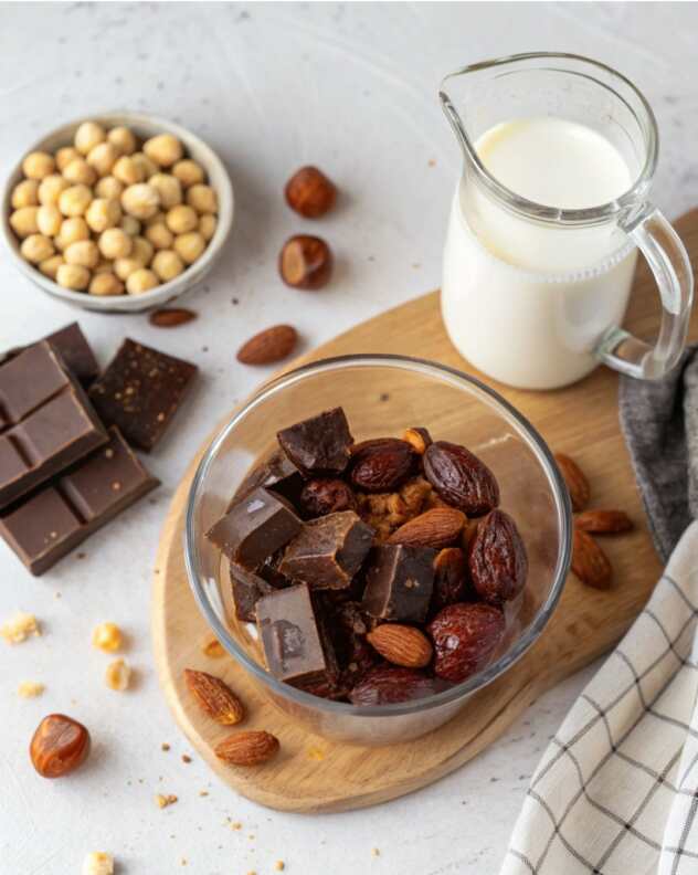 Made with sweet dates, crunchy hazelnuts and almonds, rich dark chocolate, and a splash of warm milk—this dreamy ice cream comes together in minutes.