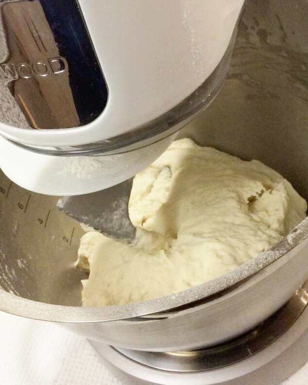 Add the above ingredients to a large mixer with a dough hook and knead in the mixer, until the dough is smooth.