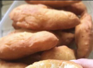 Fluffy fried dough filled with mince meat, sausage, potato or feta cheese