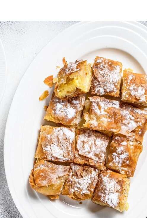 Bougatsa is a Greek breakfast pastry consisting of either semolina custard, cheese, or minced meat filling between layers of phyllo.Greek bougatsa is prepared from phyllo dough wrapped around a filling. After it is baked, it is cut into serving pieces and served hot. If the filling is semolina custard, then the pastry may be lightly ...