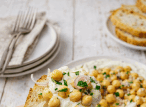 Topped with marinated cherry tomatoes, fragrant basil, and good olive oil, it is a plate that belongs on every Mediterranean table.It works as a mezze, a light meal, or the centerpiece of a casual gathering.